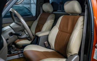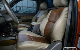 -Custom leather interior with touch screen sound system.